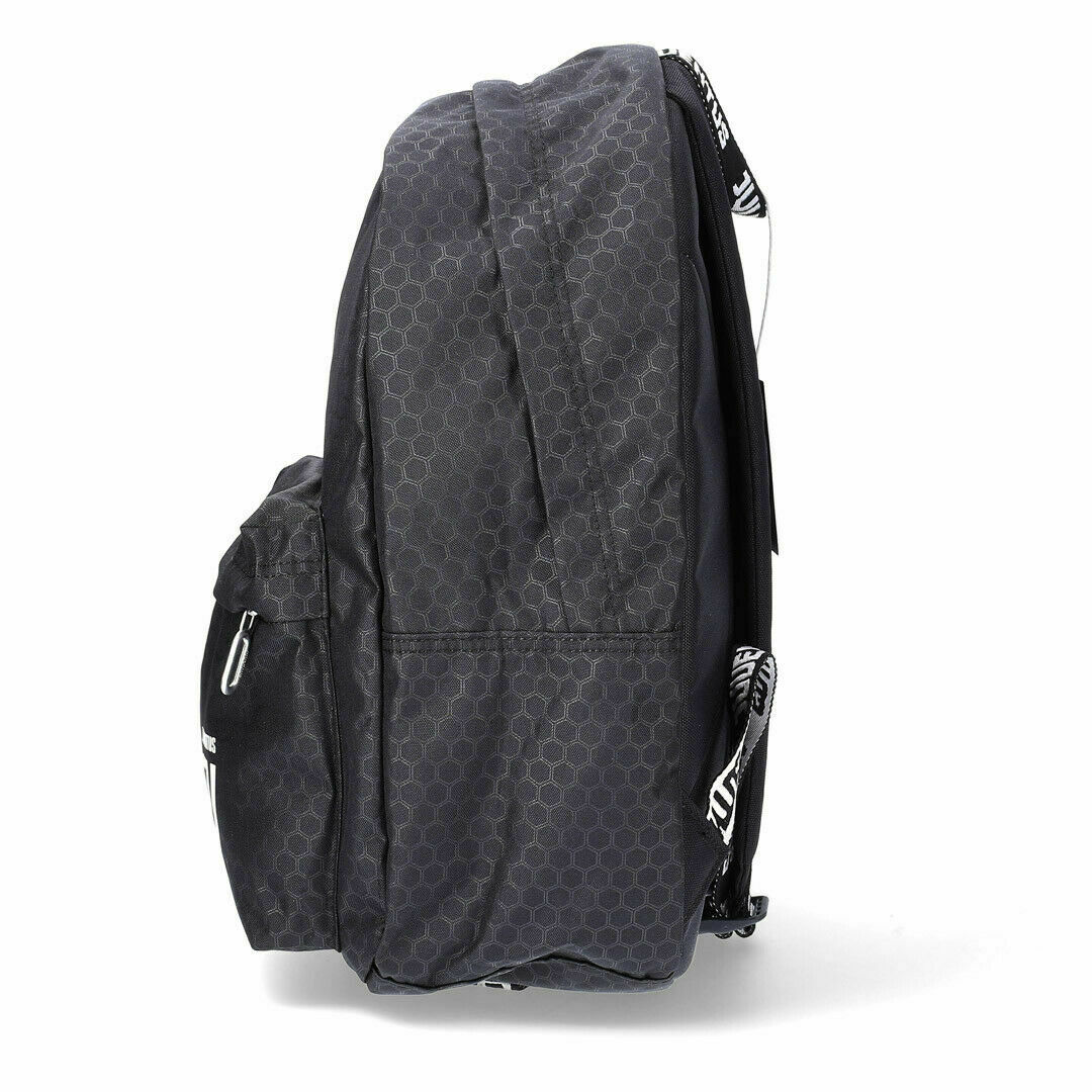 Zaino con apertura principale con zip a doppia apertura, tasca frontale, tirazip personalizzati, spallacci imbottiti regolabili in lunghezza. Sulla parte frontale nastro in jacquard applicato con la scritta Juventus, tessuto con disegno esagonale impresso a caldo e dettagli giallo fluo.Specifiche