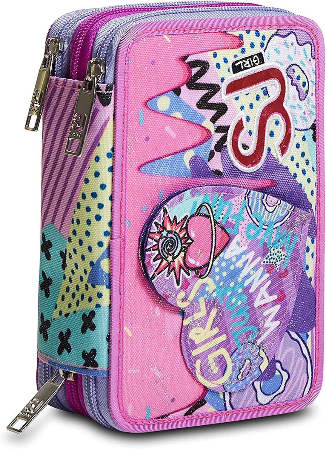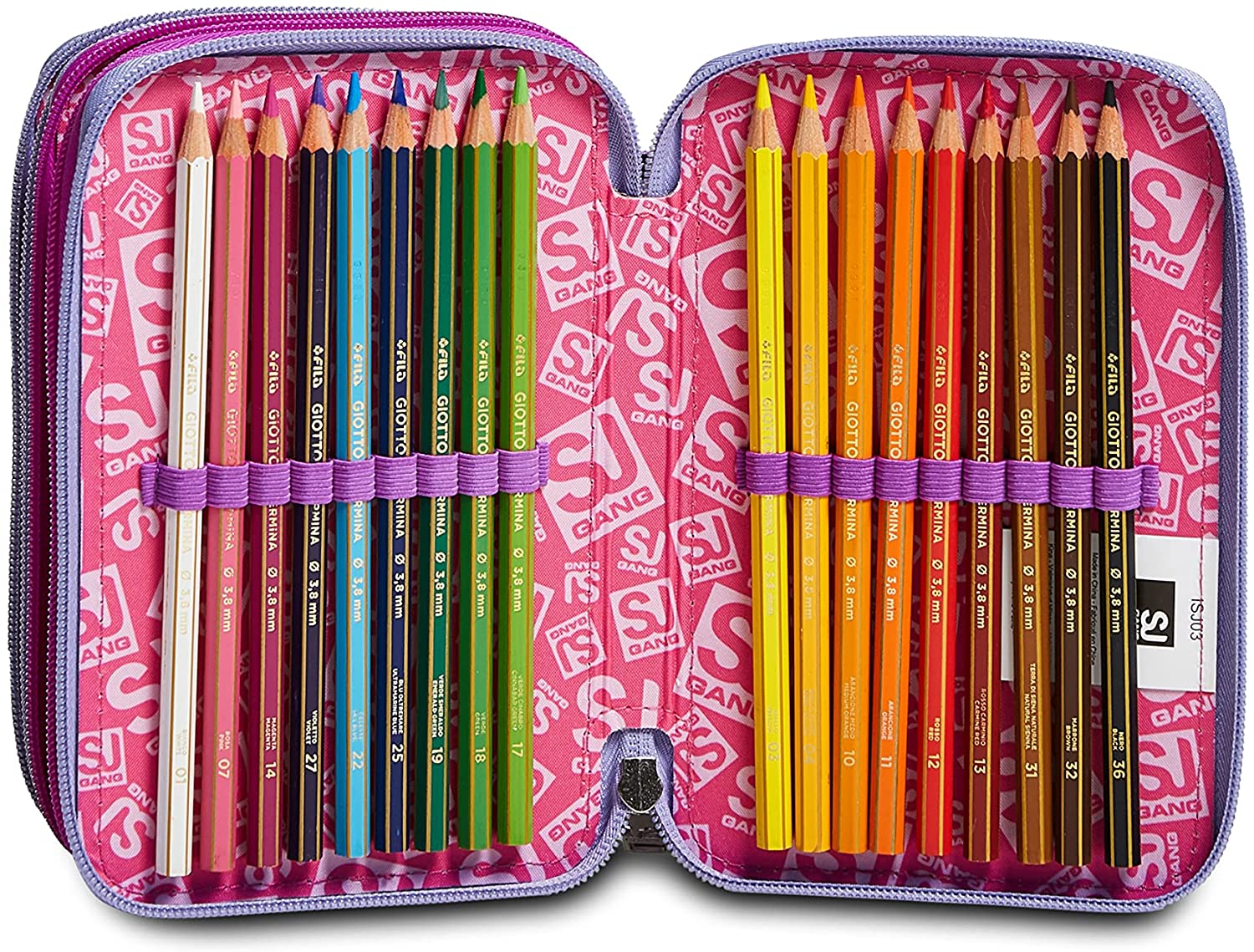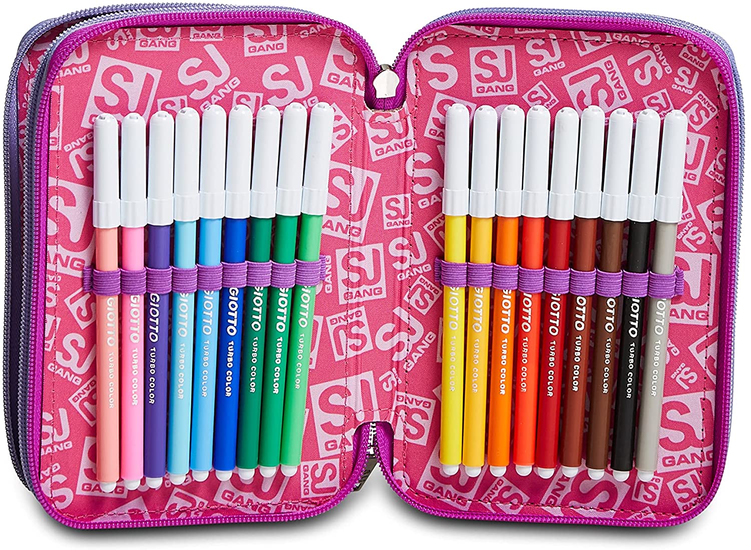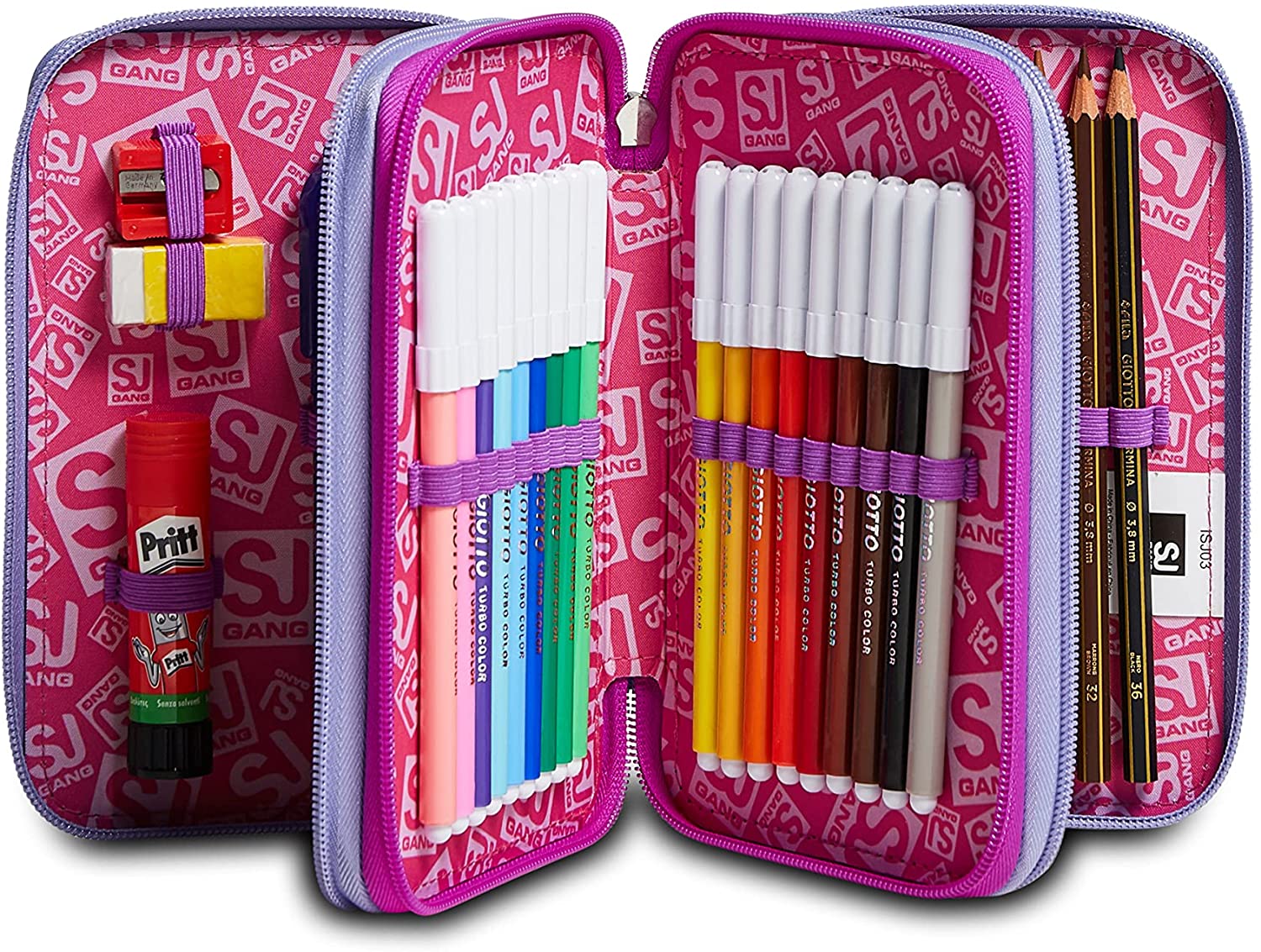 - TASCHE: Triplo scomparto.. ALTRE CARATTERISTICHE': CONTENUTO: 1 penna cancellabile blu, 1 penna rossa, 18 pastelli a colori, 18 pennarelli, 1 colla stick, 1 matita, 1 gomma, 1 temperino, 1 righello, 1 goniometro, 1 forbice. Due applicazioni sfogliabili calamitate.