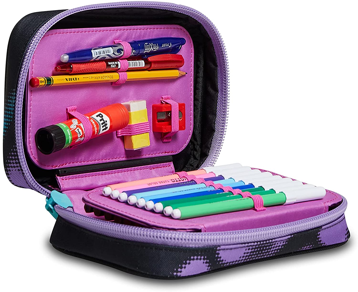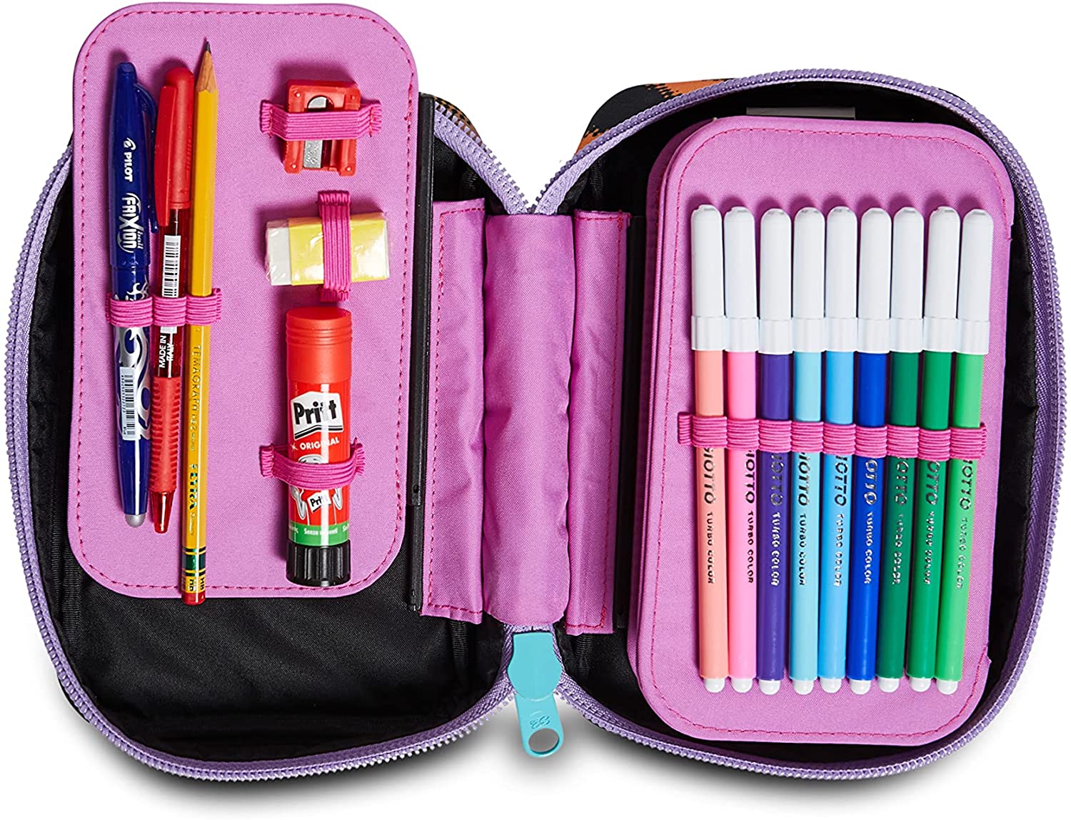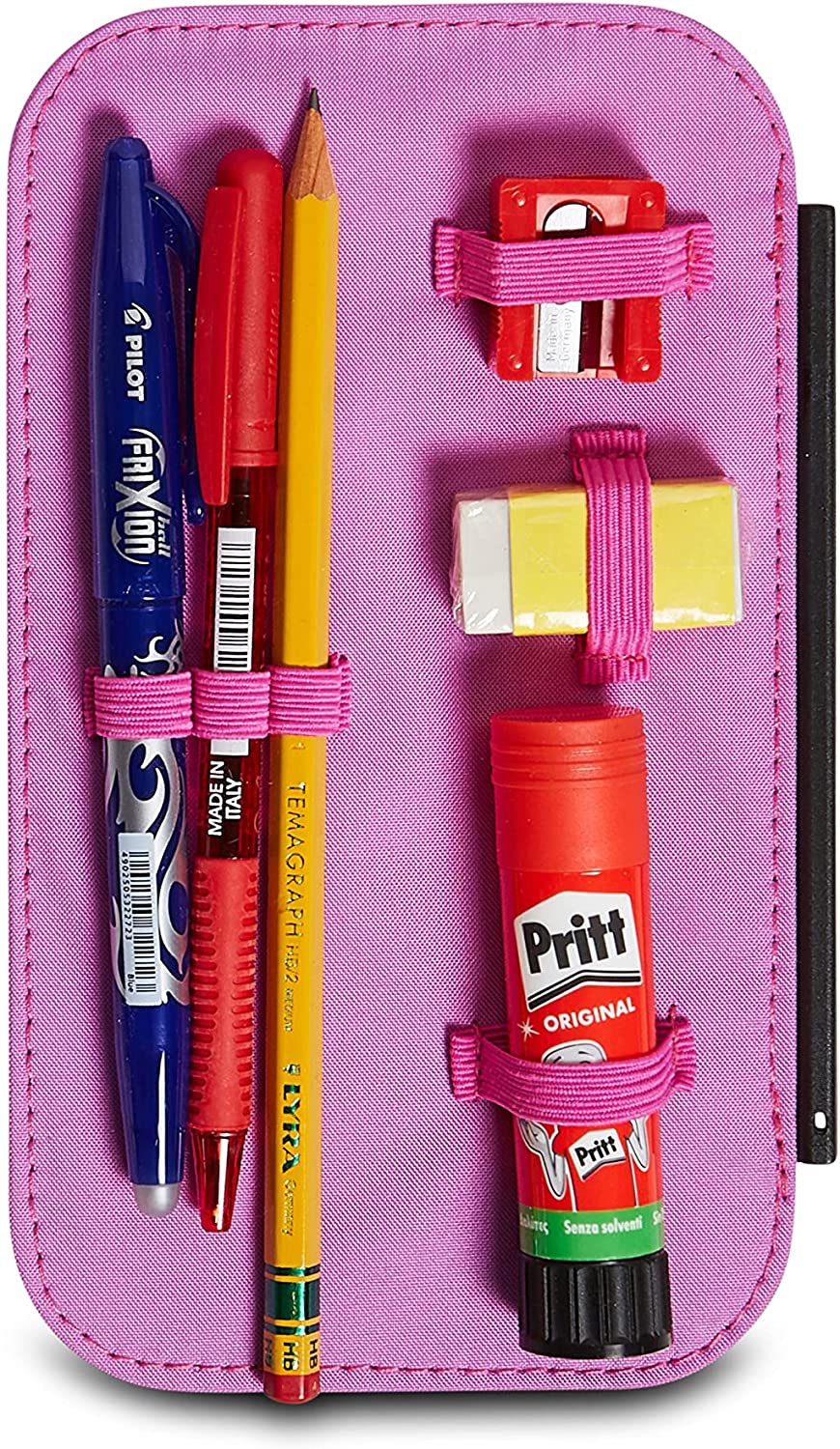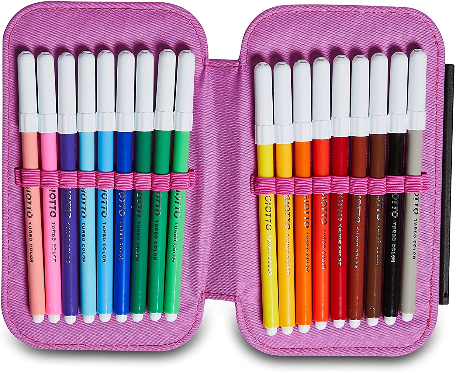 - ALTRE CARATTERISTICHE': Apertura singola, plance amovibili ed elastici interni per cancelleria. CONTENUTO 44 PEZZI: 1 penna cancellabile PILOT FRIXION ball 0,7 - colore blu, 1 penna a sfera FILA TRATTO - colore rosso, 18 pennarelli GIOTTO TURBOCOLOR, 18 pastelli a colori GIOTTO SUPERMINA, 1 matita grafite LYRA, 1 colla stick PRITT, 1 gomma, 1 temperino, 1 righello trasparente, 1 forbice in metallo con maniglia in plastica