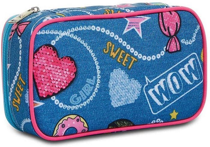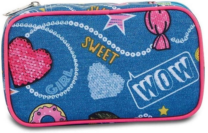 Astuccio per la scuola SJ Quick Case. Realizzato in robusto poliestere, con ampia tasca principale chiusa da zip e divisorio interno. Complete di tutto l'occorrente per la scuola!
