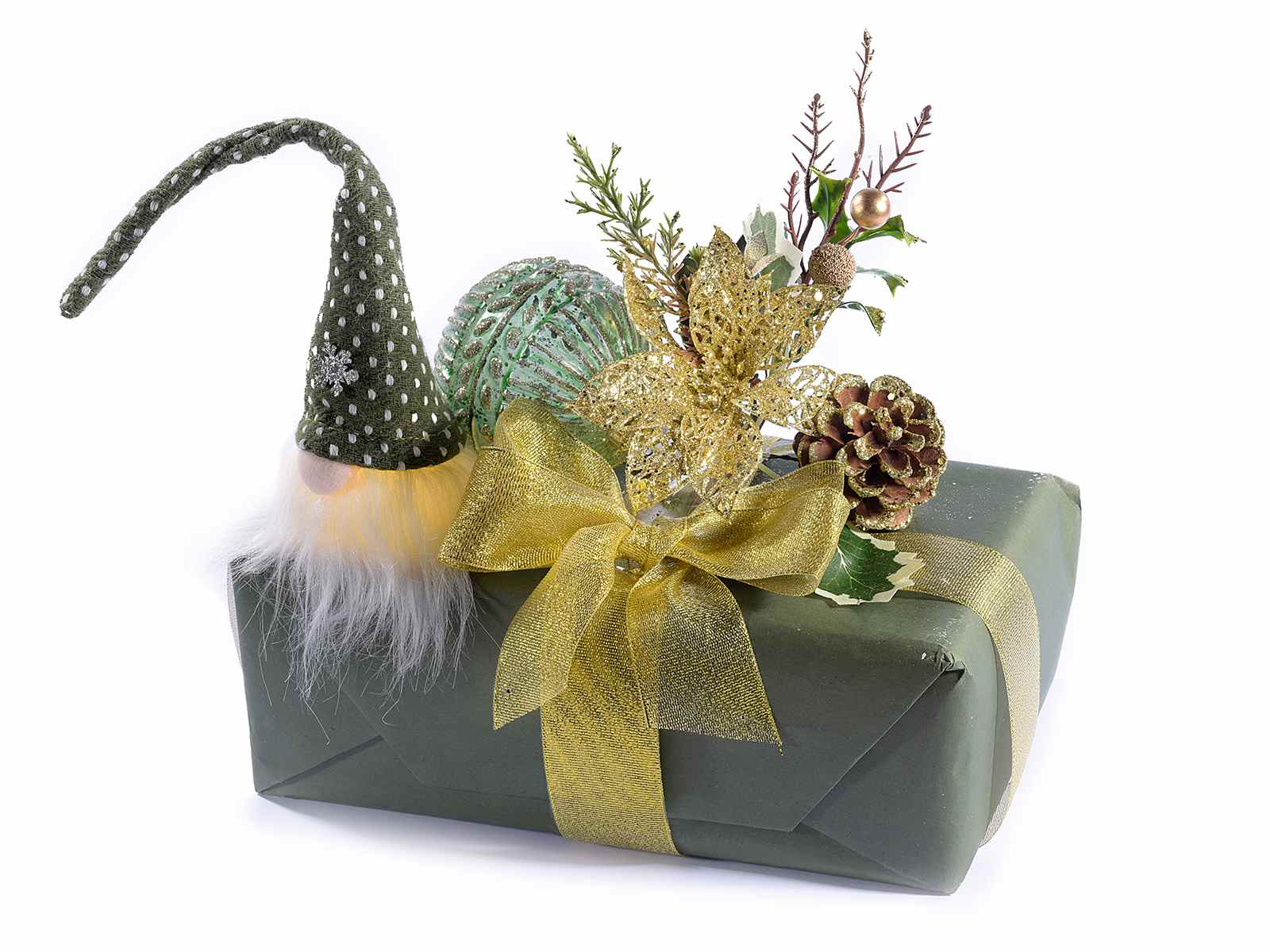 BABBO NATALE CON BARBA LUNGA, CAPPELLO C/FIOCCO NEVE E LUCE
