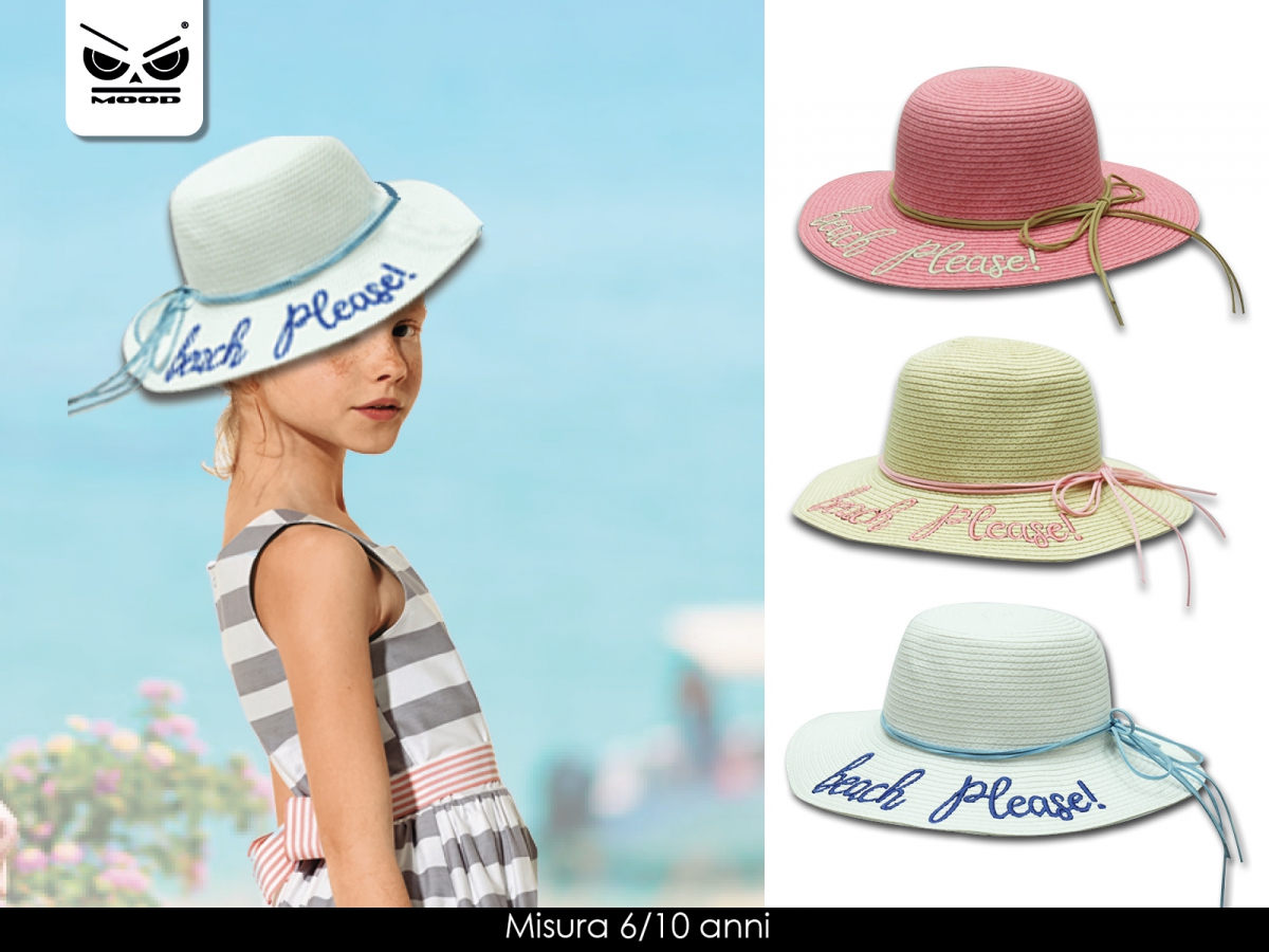 diam. 52 / 54 cm. dai 6 a 10 anni cappello da spiaggia per bambine