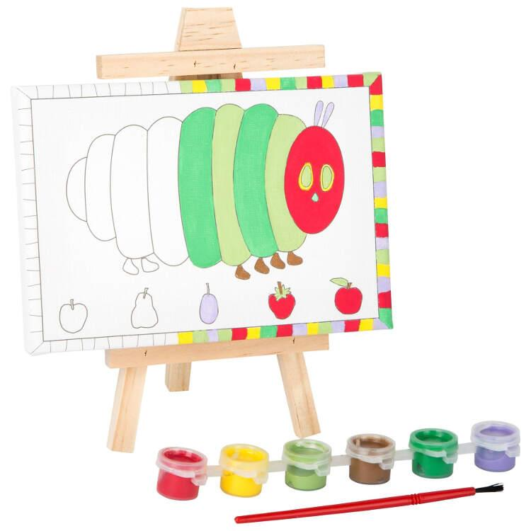 Per piccoli, grandi artisti! Con questo grazioso set per dipingere con cavalletto, colori accesi e pennello si può riprodurre su tela il Bruco "Maisazio" (e non solo). In totale sono fornite tre tele: due con un modello da dipingere e una da plasmare liberamente. In questo modo i bambini possono dare libero sfogo alla propria creatività . Col suo pratico imballaggio, il Bruco "Maisazio" è adatto a diventare un fantastico regalo. Pennello in mano, pronti, via!