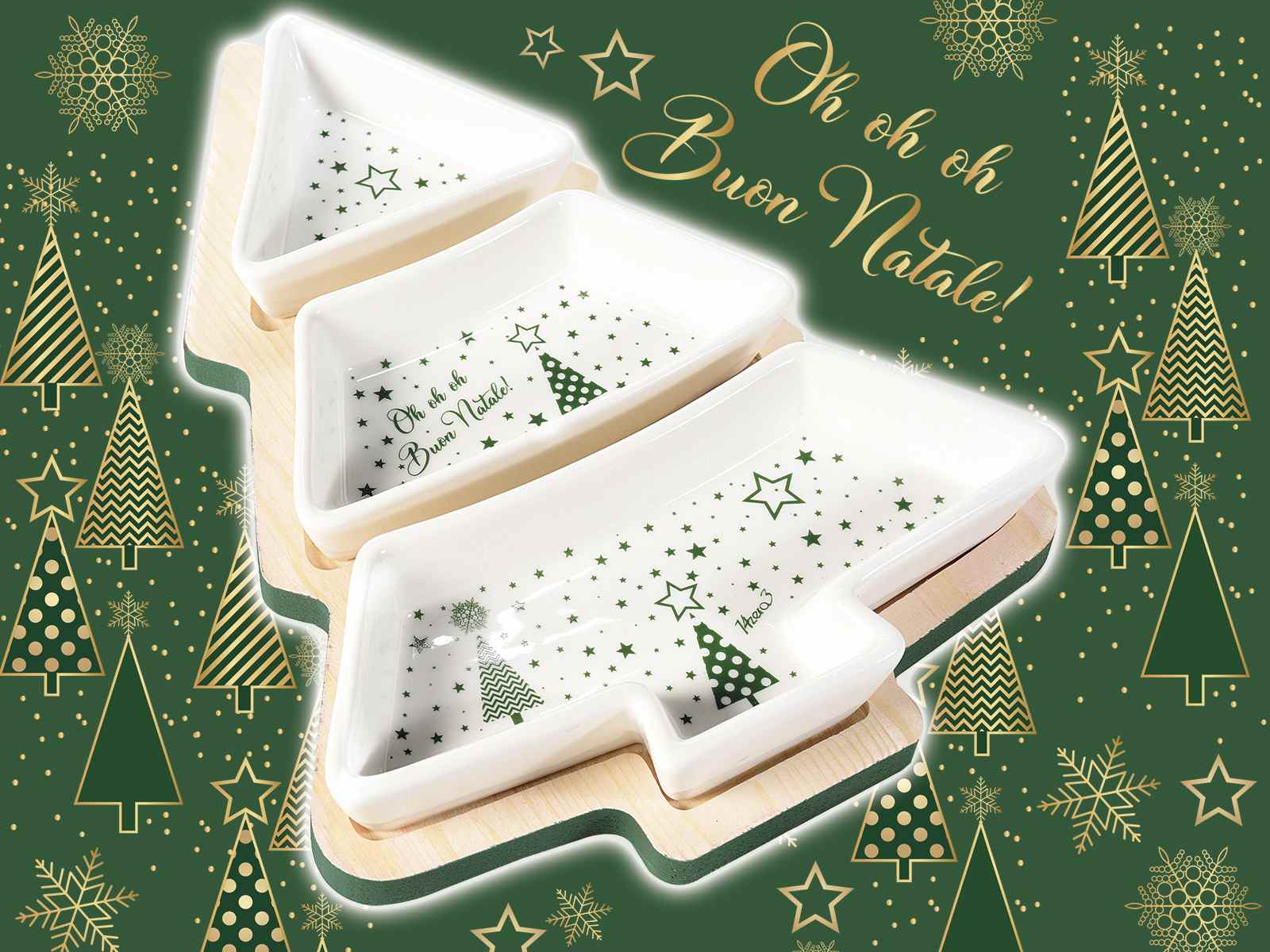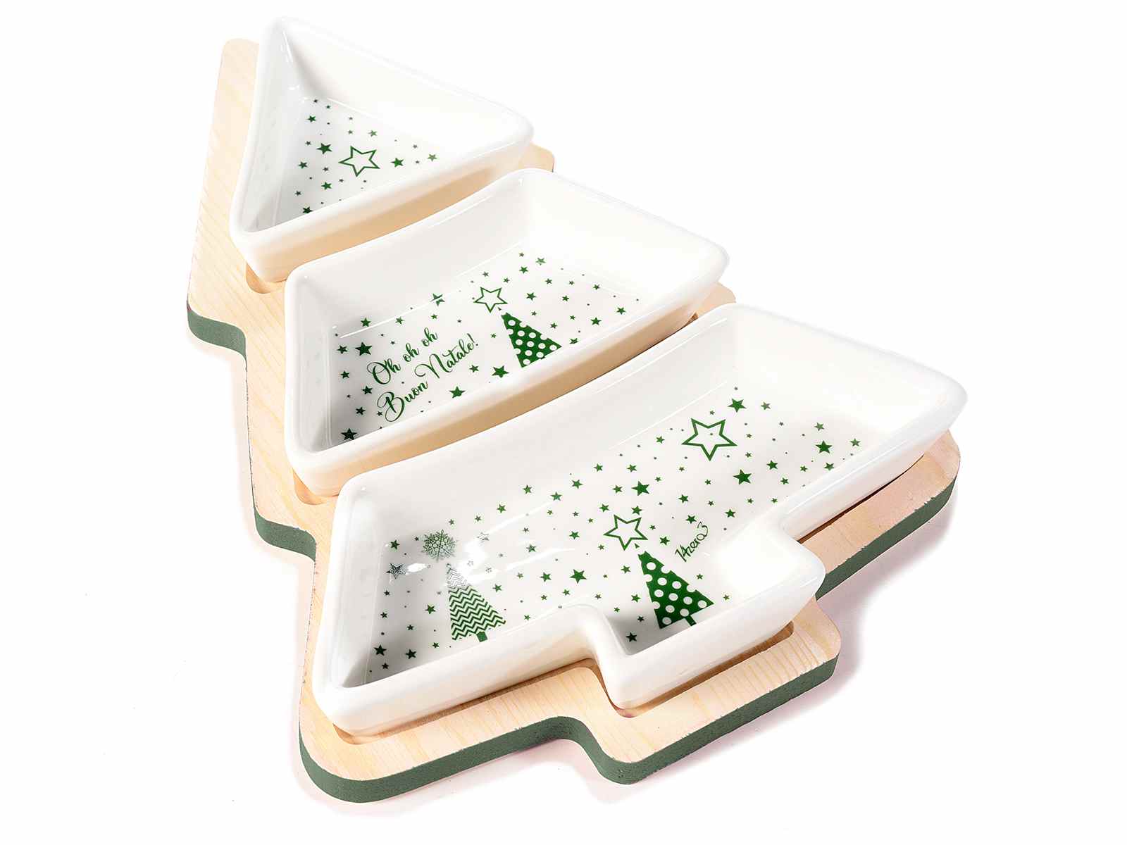 SET APERITIVO C/3 PIATTINI CERAMICA SU VASSOIO AD ALBERO
