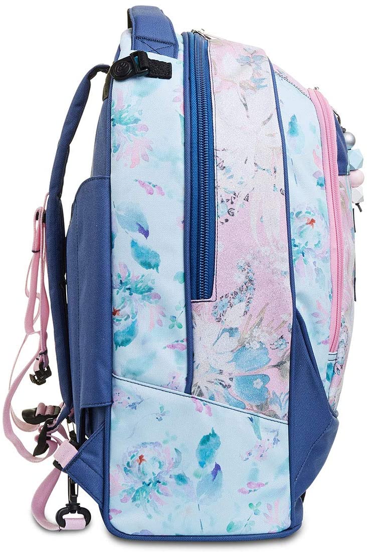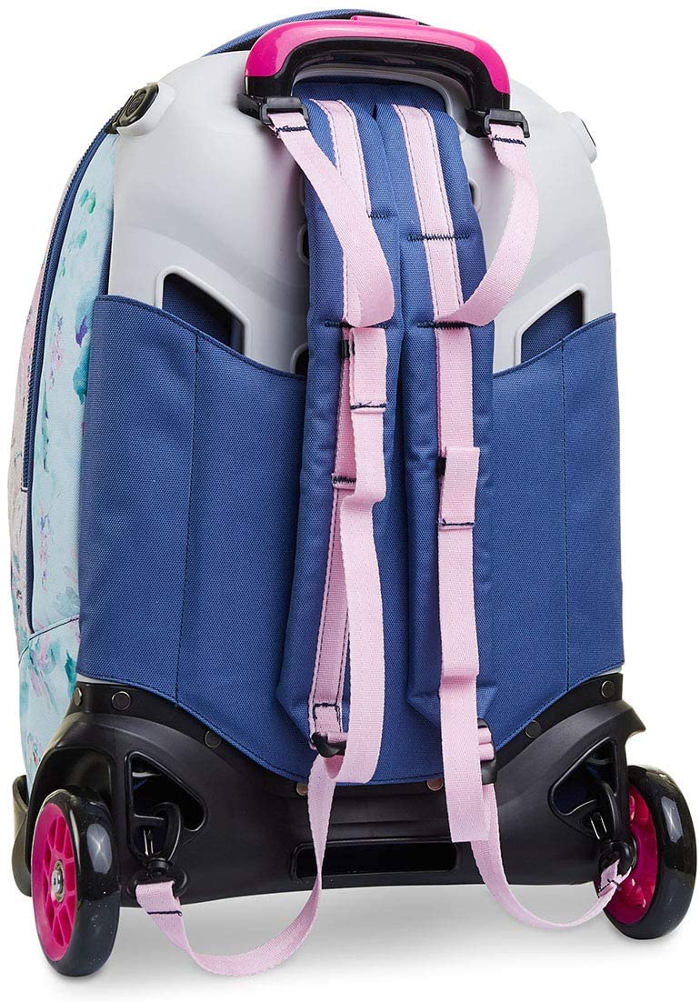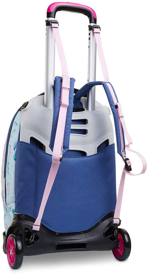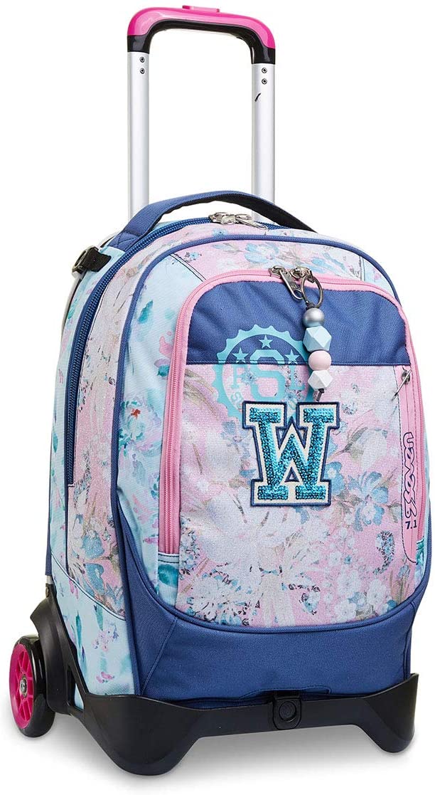 Il Trolley Seven Jack-2WD CHIC LEAGUE in tessuto glitter e personalizzato con charm e patch in paillettes, unisce stile e versatilità. In poche semplici mosse, infatti, da trolley diventa zaino e viceversa. Il carrello ha fondo rinforzato e protezioni angolari, dando stabilità al trolley e protezione al contenuto. Lo sganci e hai uno zaino lavabile, maxi capiente, dotato di tasca frontale e comodo da indossare grazie a schienale imbottito e spallacci imbottiti e traspiranti. Spallacci che, se lo usi come trolley, possono essere a scomparsa o, grazie al CROSSOVER SYSTEM, sollevarsi automaticamente tirando su la resistente doppia barra telescopica con due regolazioni in altezza, evitando che i nastri striscino a terra. Infine con le maxi ruote da 10 cm trascinare il Trolley Seven Jack-2WD CHIC LEAGUE lungo tutti i percorsi della tua giornata è facilissimo.