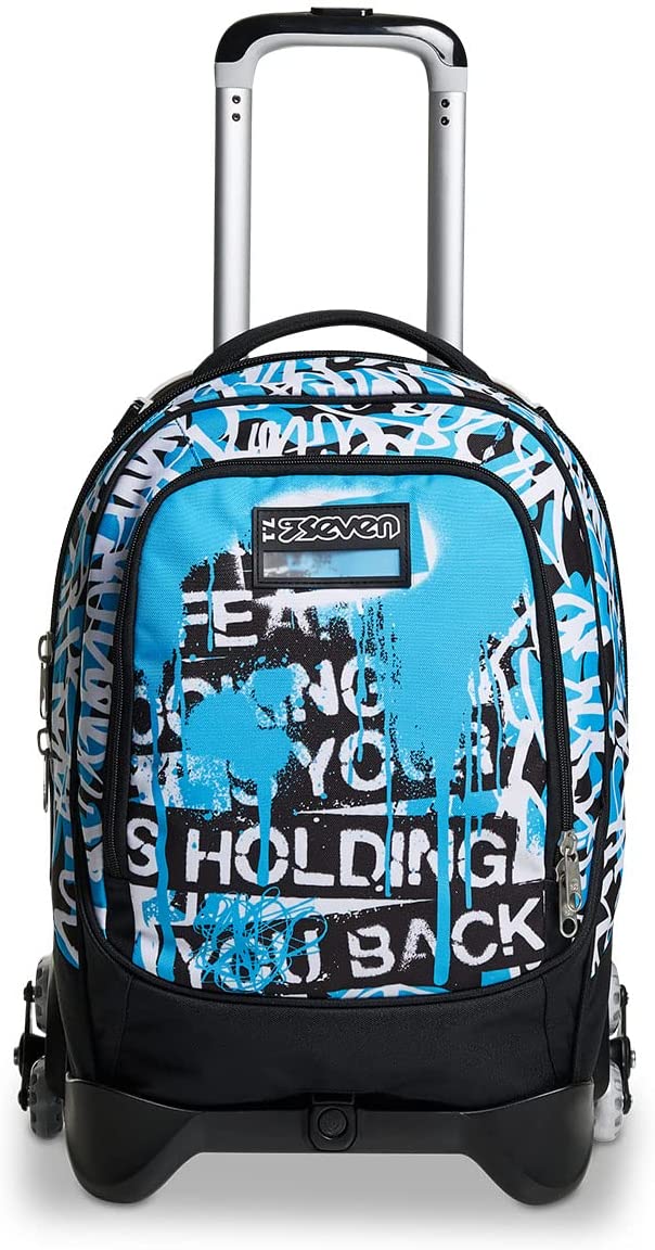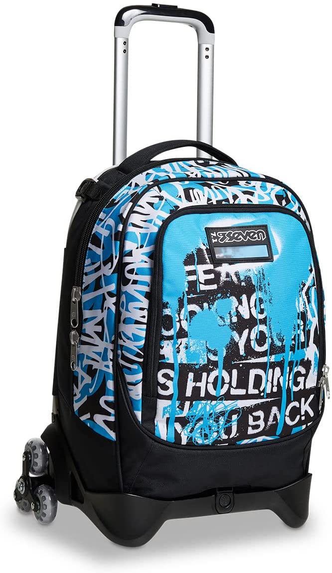 - Il Trolley Seven Jack-3WD, dotato di un sistema a 3 ruote agevola la salita dei gradini. Il carrello ha fondo rinforzato e protezioni angolari. Lo sganci e hai uno zaino lavabile, maxi capiente, dotato di tasca frontale e comodo da indossare grazie a schienale e spallacci imbottiti. Spallacci che, se lo usi come trolley, possono essere a scomparsa o sollevarsi automaticamente tirando su la doppia barra telescopica con due regolazioni in altezza, evitando che i nastri striscino a terra.