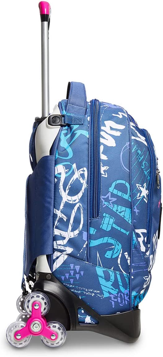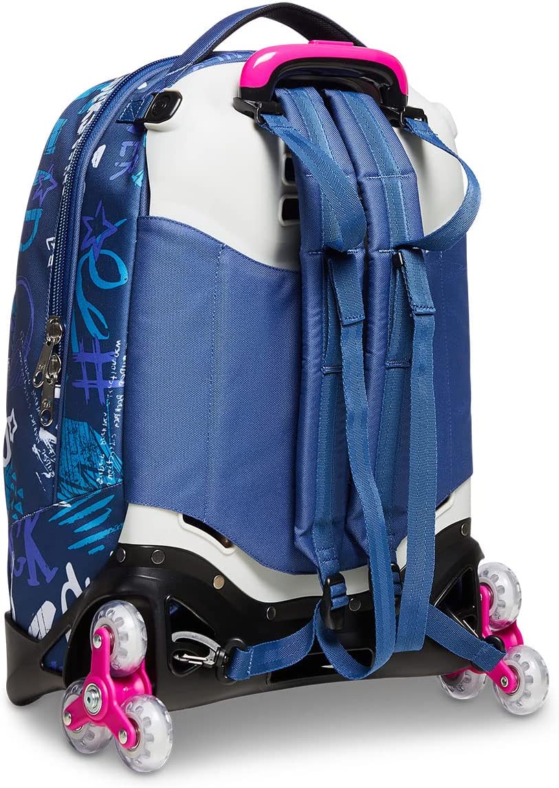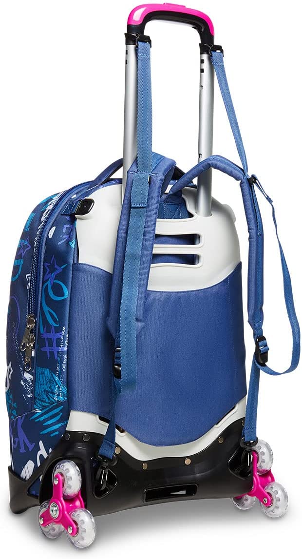 - Il Trolley è dotato di un fantastico cuore led che si illumina a tempo di musica! Con un sistema a 3 ruote che agevola la salita dei gradini e personalizzato. Da trolley diventa zaino e viceversa. Il carrello ha fondo rinforzato e protezioni angolari.Lo sganci e hai uno zaino lavabile, maxi capiente, dotato di tasca frontale e comodo da indossare. Spallacci che, se lo usi come trolley, possono essere a scomparsa possono sollevarsi automaticamente tirando su la doppia barra telescopica.