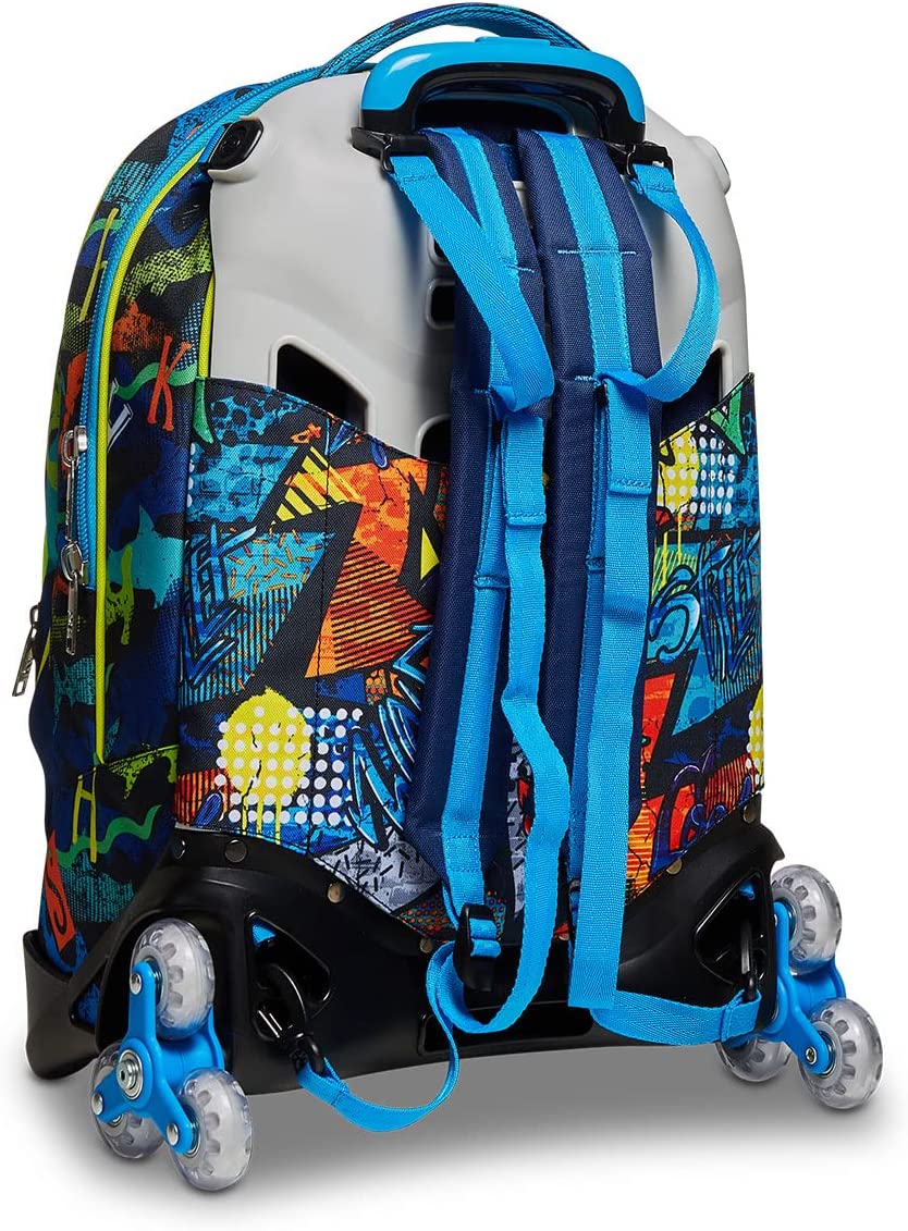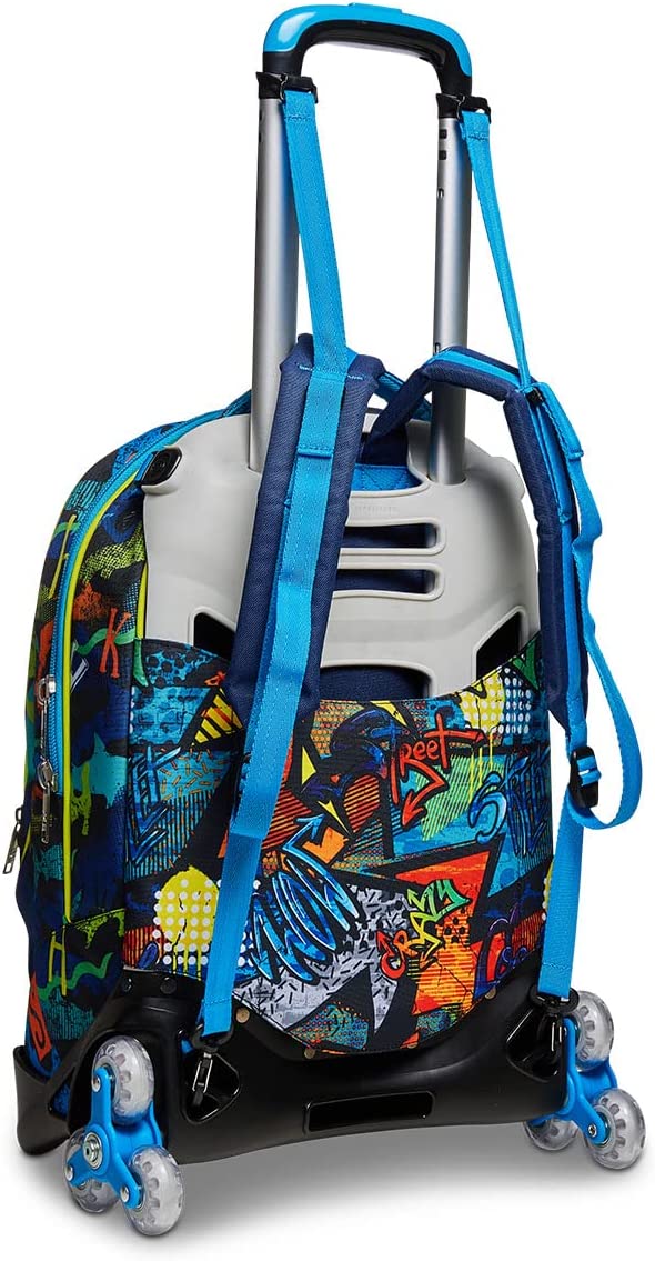 - TASCHE: Tasca frontale chiusa con zip.. ALTRE CARATTERISTICHE: Sistema a tre ruote che agevola la salita dei gradini. 3 POSSIBILI UTILIZZI: 1) Uso trolley con spallacci a scomparsa totale nello schienale. 2) Uso zaino senza sganciare il carrello. 3) Uso zaino quando completamente sganciato (zaino lavabile).