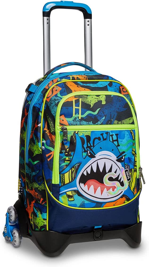 Ciao! Sono il nuovo Trolley Jack-3WD, dotato di sistema a 3 ruote per agevolare la salita dei gradini. Colorato e multiuso, in poche semplici mosse da trolley divento zaino e viceversa. Il mio carrello ha fondo rinforzato e protezioni angolari per dare stabilità al trolley e protezione al contenuto. Lo sganci e divento uno zaino lavabile, maxi capiente, dotato di tasca frontale e comodo da indossare grazie a schienale e spallacci imbottiti e rivestiti in tessuto. Spallacci che, se mi usi come trolley, possono essere a scomparsa o, grazie al CROSSOVER SYSTEM, sollevarsi automaticamente tirando su la resistente doppia barra telescopica con due regolazioni in altezza, evitando che i nastri striscino a terra.