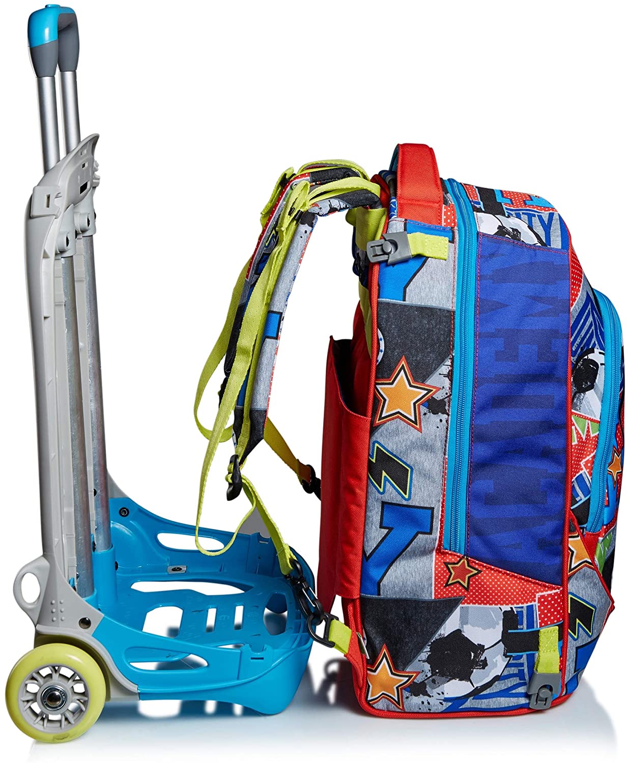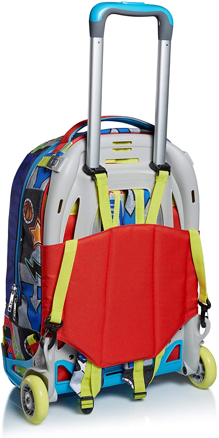 CARATTERISTICHE: 3 possibili utilizzi: 1) Uso zaino quando completamente sganciato dal carrello. 2) uso zaino senza sganciare il carrello. 3) uso trolley con spallacci a scomparsa totale nello schienale.