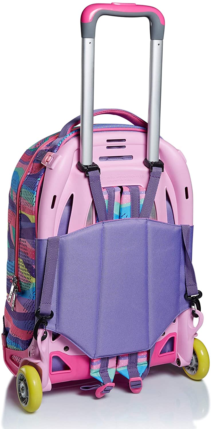 CARATTERISTICHE: 3 possibili utilizzi: 1) Uso zaino quando completamente sganciato dal carrello. 2) uso zaino senza sganciare il carrello. 3) uso trolley con spallacci a scomparsa totale nello schienale.