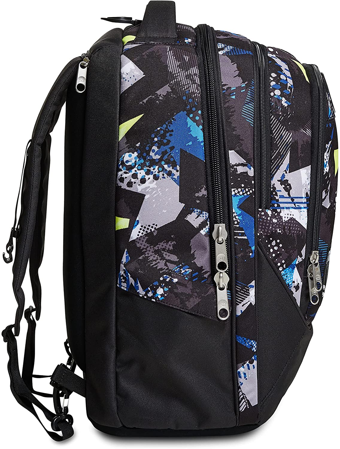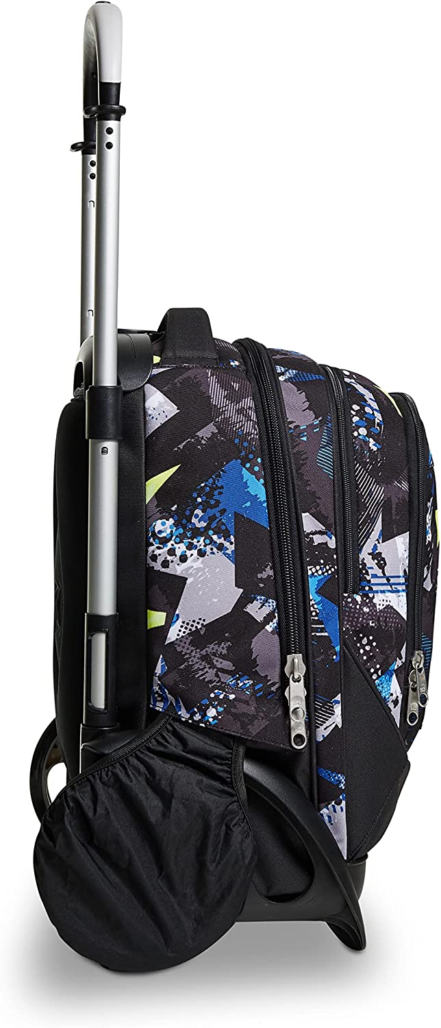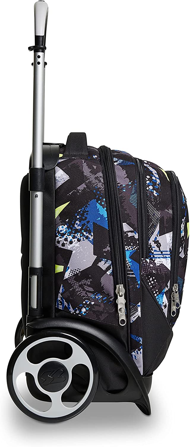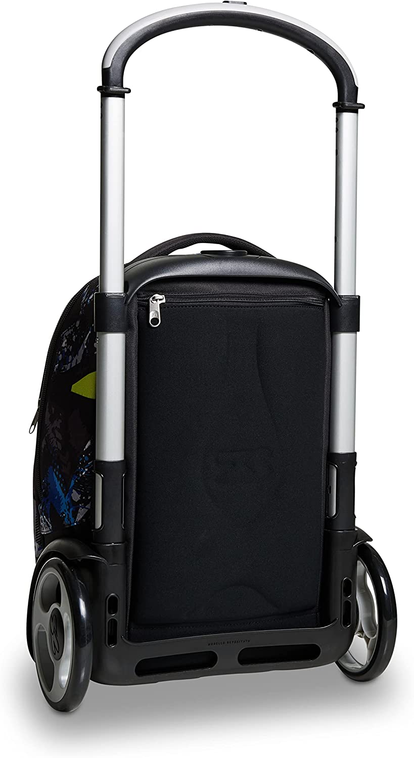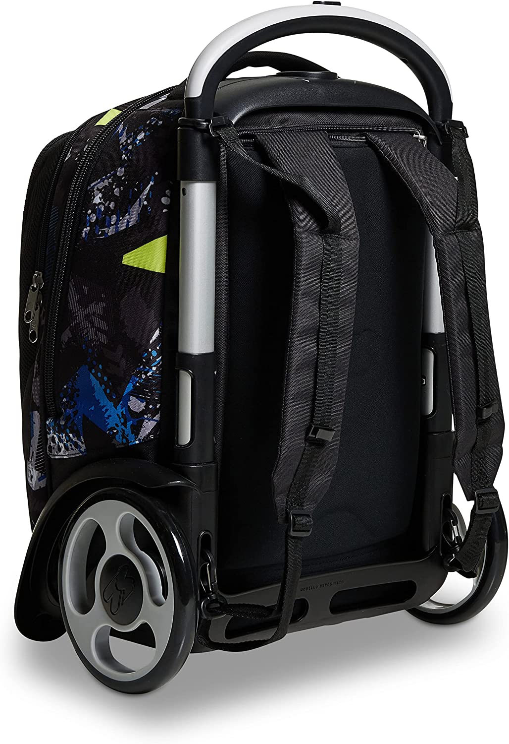 - TASCHE: Tasca frontale. ALTRE CARATTERISTICHE': Trolley scomponibile con maxi ruote 17 cm e maxi barra, Crossover System con clips per l'aggancio dei nastri, doppia barra telescopica con due regolazioni in altezza, fondo rinforzato e protezioni angolari. 3 possibili utilizzi: 1) uso trolley con spallacci a scomparsa totale nello schienale; 2) uso zaino senza sganciare il carrello; 3) uso zaino quando completamente sganciato dal carrello (zaino lavabile)