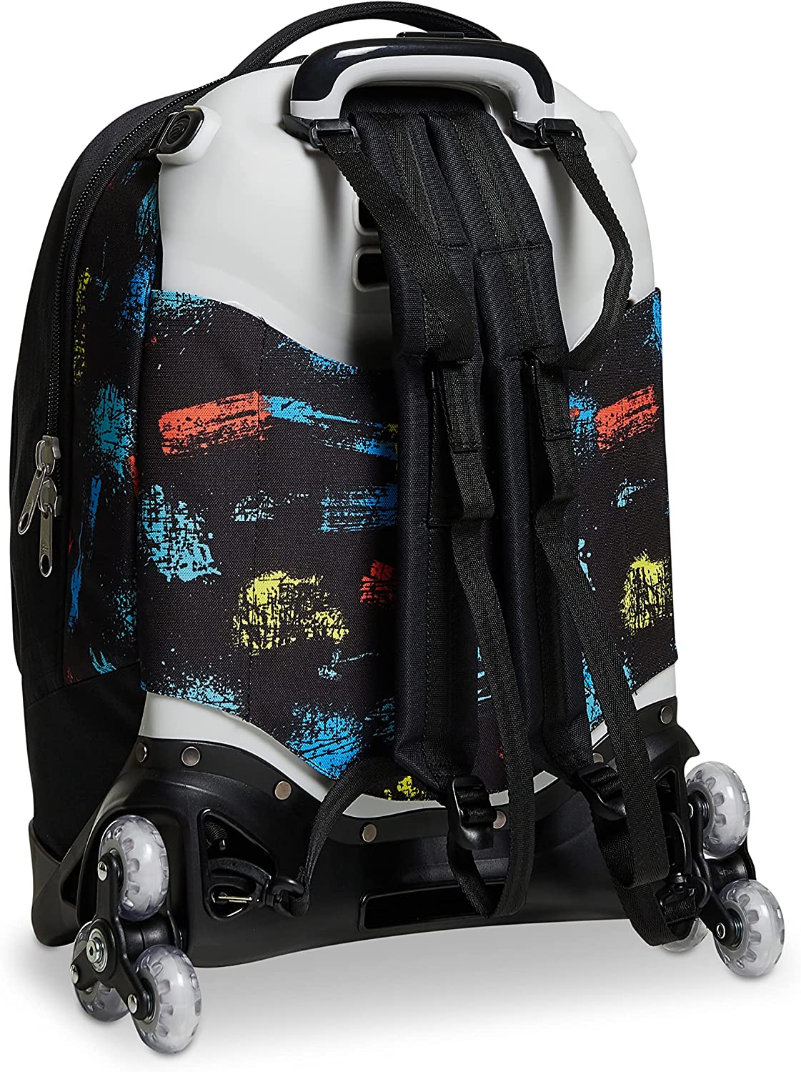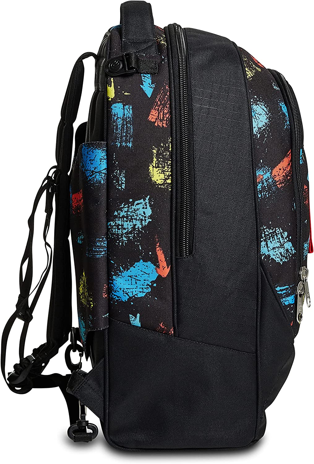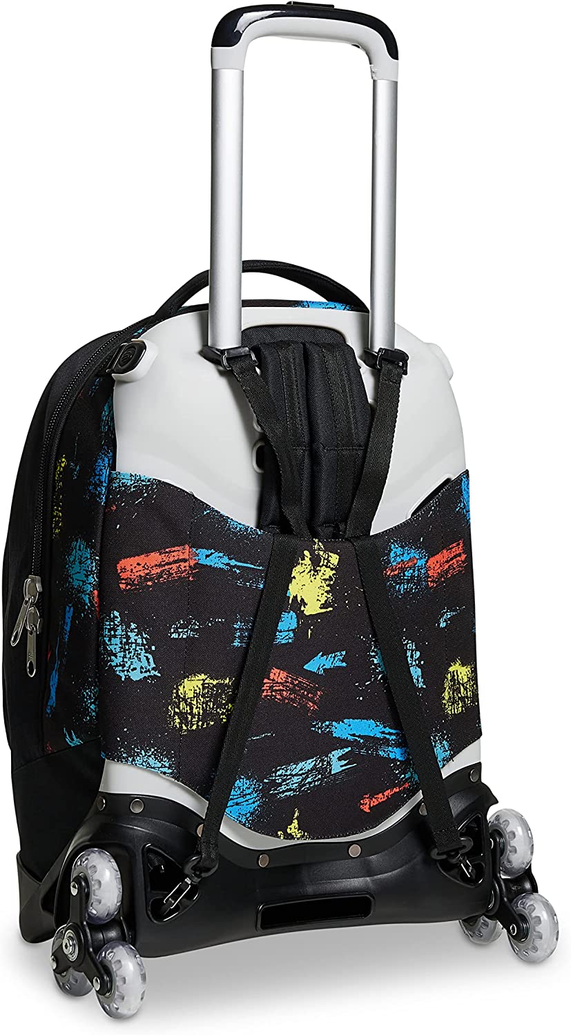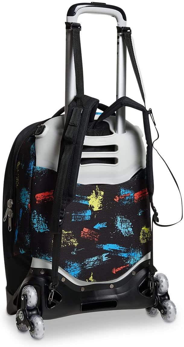 - TASCHE: Tasca frontale. ALTRE CARATTERISTICHE': Trolley scomponibile con maxi ruote 17 cm e maxi barra, Crossover System con clips per l'aggancio dei nastri, doppia barra telescopica con due regolazioni in altezza, fondo rinforzato e protezioni angolari. 3 possibili utilizzi: 1) uso trolley con spallacci a scomparsa totale nello schienale; 2) uso zaino senza sganciare il carrello; 3) uso zaino quando completamente sganciato dal carrello (zaino lavabile)