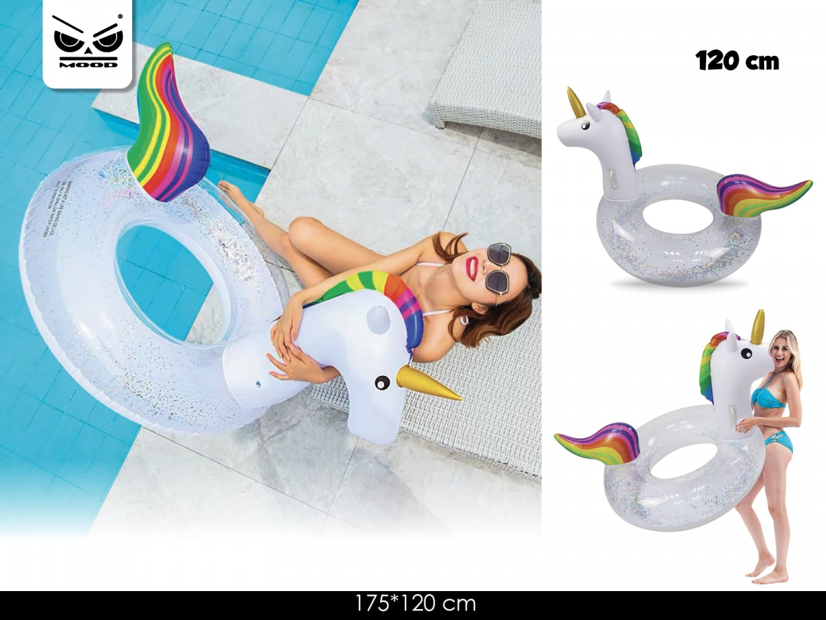 h175*120 cm. Gonfiabile Unicorno con glitter XL