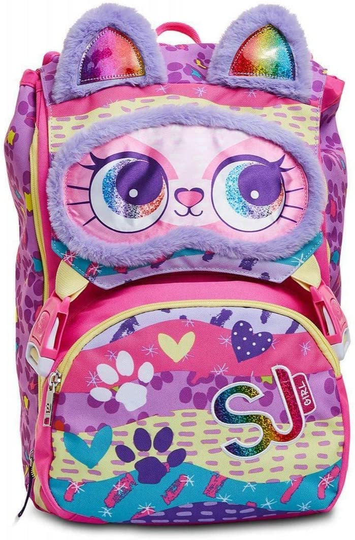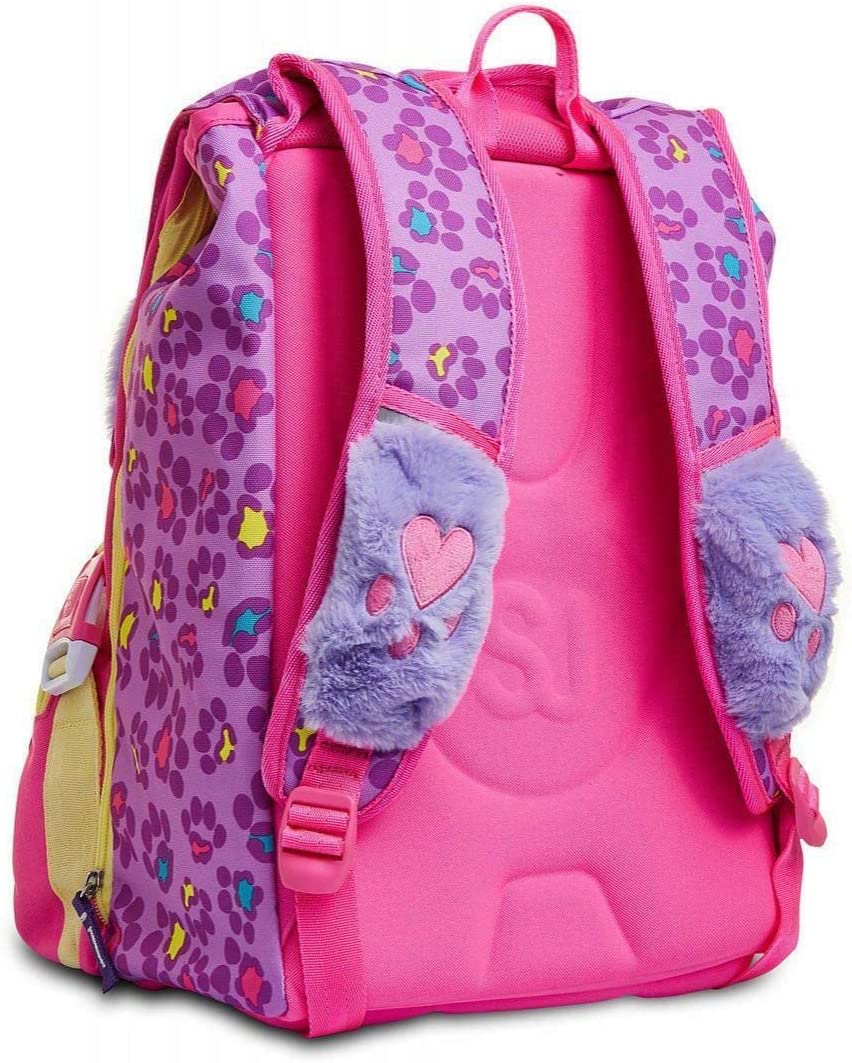 Ciao! Sono il nuovo zaino estensibile ANIMALI FANTASY DA SJ GIRL! Divertititi a far muovere su e giù le mie fantastiche orecchie di peluche premendo il pulsante sullo spallaccio! Ho dettagli in peluche anche sulla pattina! Ho un doppio scomparto spazioso, di cui puoi aumentare facilmente la capienza tramite le zip laterali per poter accogliere e distribuire in modo ottimale anche i carichi più pesanti, sfruttando pure la tasca frontale. Inoltre sono davvero comodo da indossare sulle spalle, grazie allo schienale Ergosystem preformato e gli spallacci imbottiti e rivestiti in tessuto, mentre il fondo integrato mantiene la mia struttura inalterata, garantendo la stabilità del contenuto anche a pieno carico.