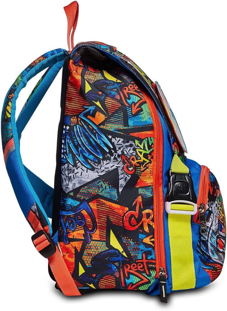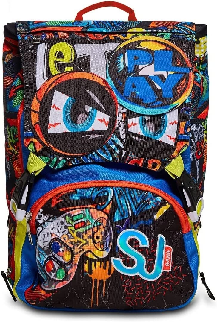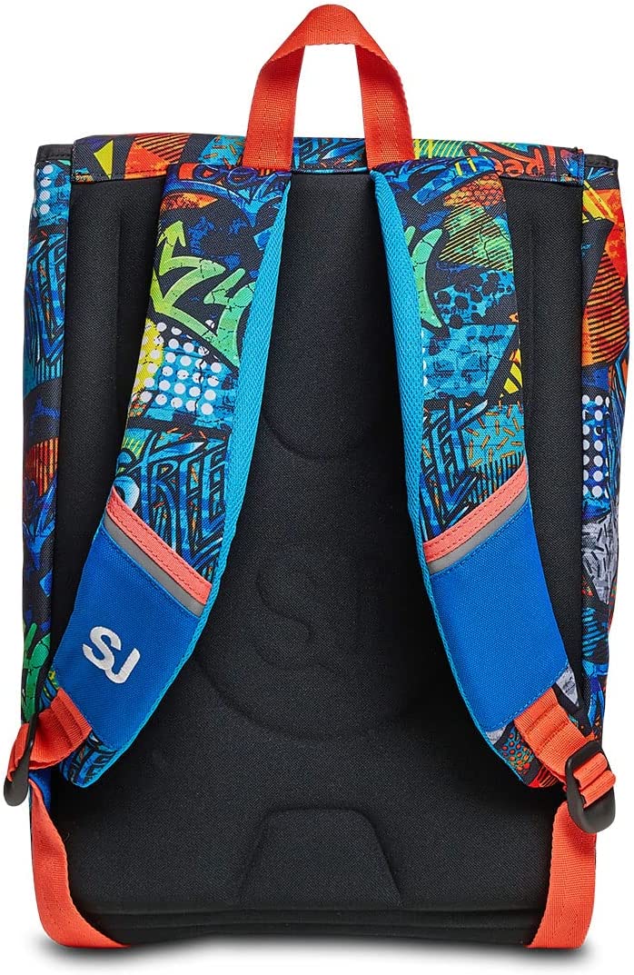 Ciao! Sono il nuovo zaino estensibile FACCE DA SJ BOY! Grazie al mio FLIP SYSTEM, puoi divertirti a cambiarmi aspetto ogni volta che vuoi, sfogliando i mini flip sulla pattina e creando combinazioni diverse! Ho un doppio scomparto spazioso, di cui puoi aumentare facilmente la capienza tramite le zip laterali per poter accogliere e distribuire in modo ottimale anche i carichi più pesanti. Sono dotato di una tasca frontale, ma soprattutto sono davvero comodo da indossare sulle spalle, grazie allo schienale Ergosystem preformato e agli spallacci imbottiti e traspiranti. In più, il fondo integrato mantiene la mia struttura inalterata, garantendo la stabilità del contenuto anche a pieno carico.
