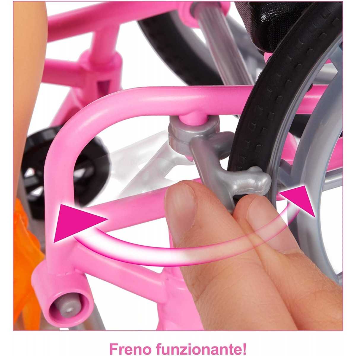 La sedia a rotelle di Barbie ha note rosa per un tocco di colore e grandi ruote funzionanti: basta spingerla per farla muovere. I bambini possono far fare alla bambola qualsiasi tipo di movimento grazie alle 22 articolazioni!