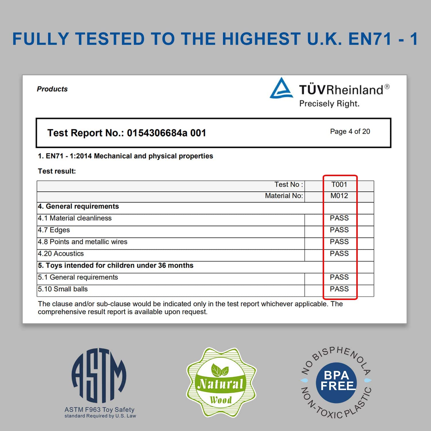 SICUREZZA DEI BAMBINI: Realizzato con materiali naturali di protezione ambientale e colorato con vernici atossiche a base d'acqua, questo giocattolo martellante in legno con superficie ben levigata è sicuro per i vostri bambini. E il martello di legno e le palle sono abbastanza grandi che non c'è bisogno che le mamme si preoccupino della sicurezza dei bambini mentre loro giocano. Inoltre, i giocattoli a palla e a martello per bambini di 1 anno sono stati testati per soddisfare e superare tutti g