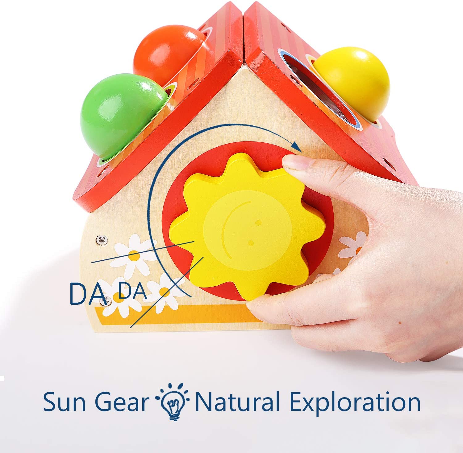 ABBINAMENTO E RICONOSCIMENTO COLORE: queste palline di questo giocattolo abbinato al colore sono dipinte con quattro diversi colori vibranti. Ogni palla ha uno slot designato per il rispettivo colore sulla parte superiore della casa di legno, che è una grande caratteristica che aiuta il bambino a riconoscere e abbinare i colori. E i giocattoli per 1 anno decorati con graziosi motivi floreali e cinture per il sole possono facilmente attirare l'attenzione dei piccoli e offrire loro enormi quantitÃ