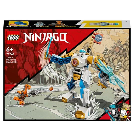 Introduci i fan dei ninja all'avvincente mondo di LEGO NINJAGO, con il Mech potenziato di Zane - EVOLUTION (71761), giocattoli per bambini dai 6 anni in su. Questa action figure di un mech altamente dettagliato e snodabile può essere potenziato dai bambini per diventare un modellino ancora più grande e più forte; è armato di una fantastica spada e un'arma a stella rotante.
