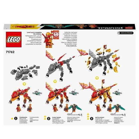 Dai ai bambini tutto ciò di cui hanno bisogno per vivere avventure ninja piene di azione con il set da costruire LEGO NINJAGO Il drago di fuoco di Kai - EVOLUTION (71762). Il giocattolo del dragone è dotato di mandibola, testa, coda e zampe snodabili e può anche essere potenziato due volte per renderlo più grande, forte e veloce.
