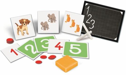 Inoltre, il gioco stimola il pensiero numerico grazie all'abbinamento tra i numeri e le tessere quantità e ai gettoni del pari e dispari.