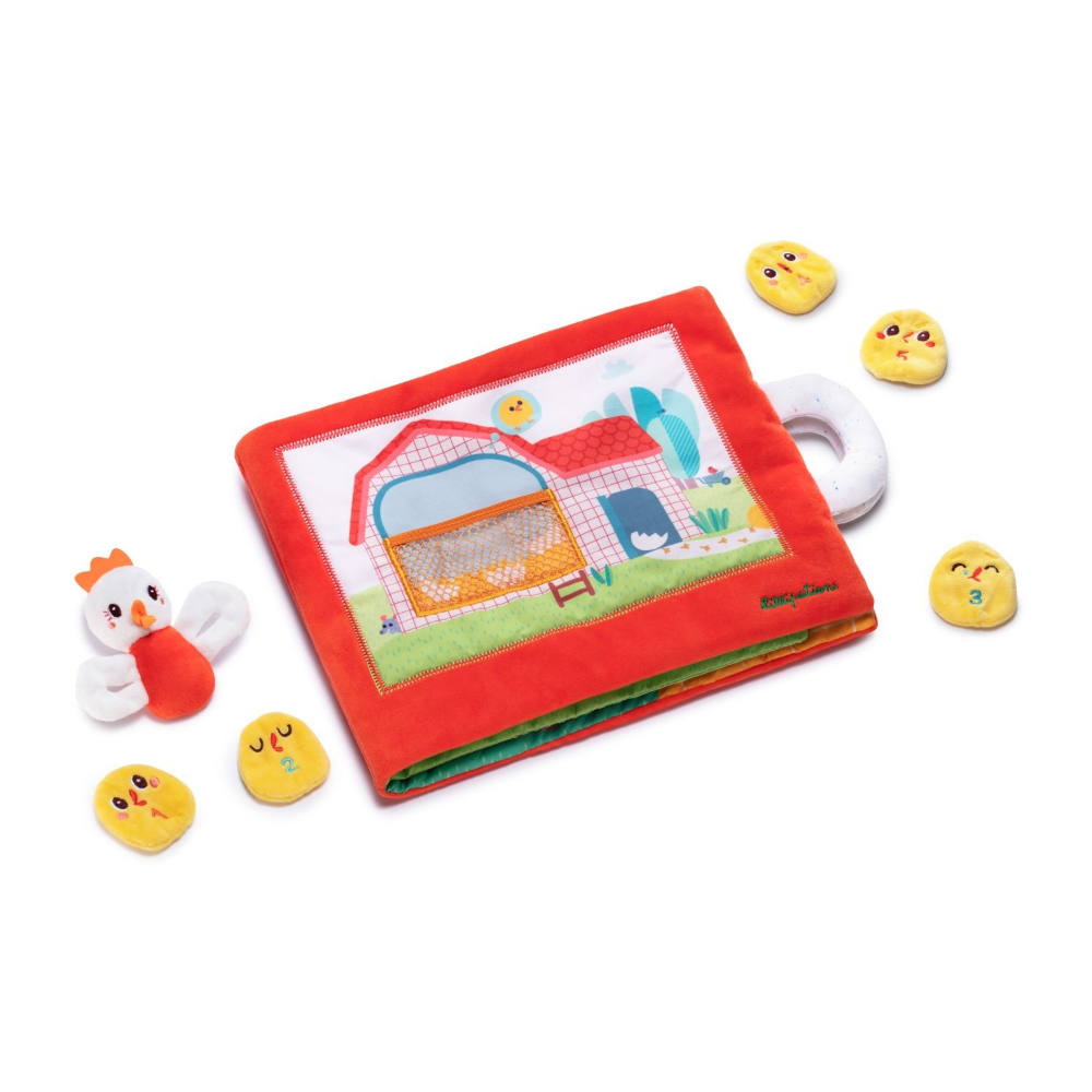 Il libro in tessuto Paulette alla ricerca dei pulcini di Lilliputiens è perfetto per familiarizzare con il mondo dell'agricoltura e dei numeri. In questo bel libro di stoffa Paulette, la simpatica gallina, va alla ricerca dei suoi piccoli pulcini. Questo libro è composto da un burattino a dito e 5 pulcini.