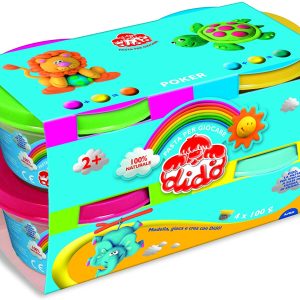 Dido’ POKER barattoli di pasta per giocare 100g nei colori azzurro, giallo, verde, magenta